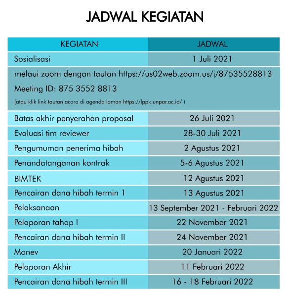- Pengusul hanya boleh menjadi ketua atau anggota untuk 1 proposal di periode hibah semester ganjil 2021/2022